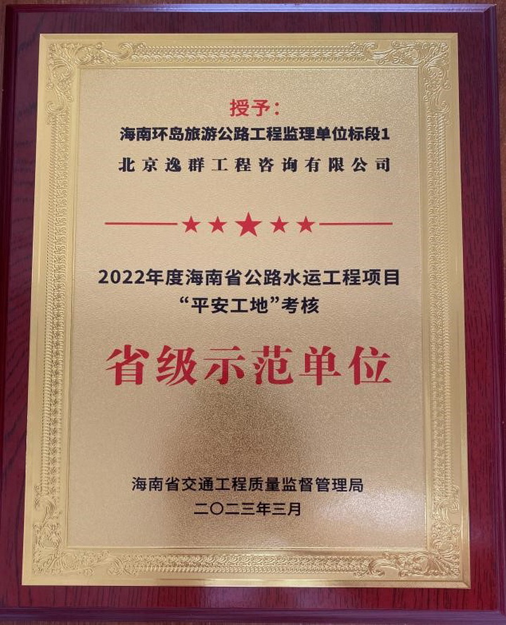 2023年3月18日,海南省2022年公路水運工程 “平安工地”建設(shè)總結(jié)表彰大會在??谂e行,由公司承攬監(jiān)理任務(wù)的環(huán)島旅游公路工程項目榮獲“省級示范單位”榮譽稱號!